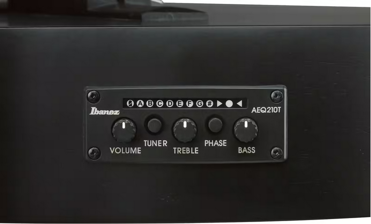 - Électronique Ibanez AEQ210T + micro piezo sous le chevalet avec accordeur intégré, prête pour la scène et le studio.